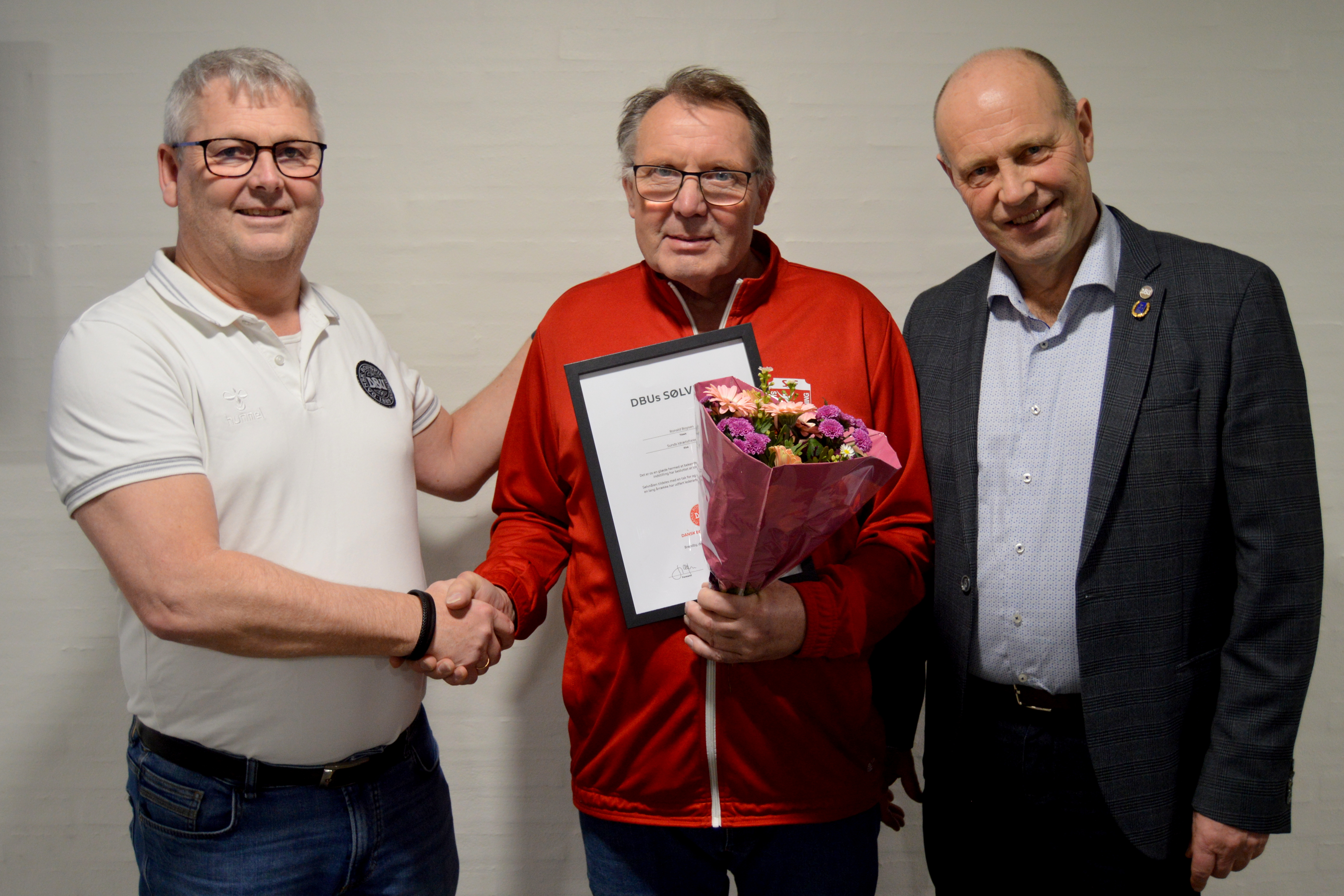 Jyllands bestyrelse overrække Ronald Boysen DBU’s sølvnål for hans store arbejde i